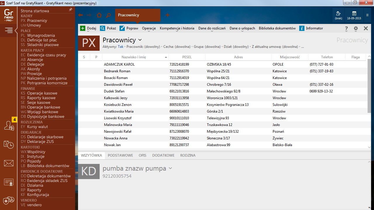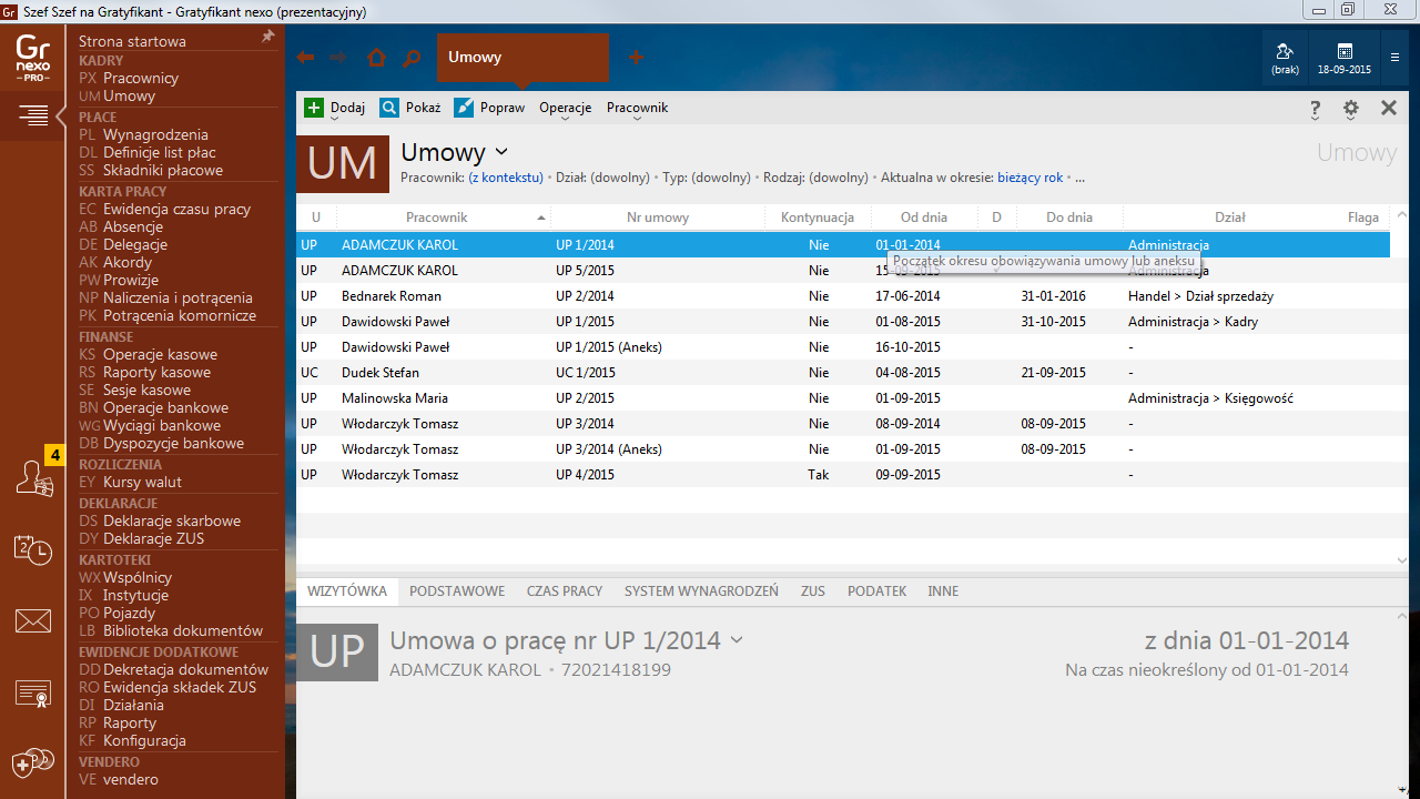 Gratyfikant nexo posiada wszystkie mechanizmy niezbędne w dziale kadr i płac – od prowadzenia rozbudowanej ewidencji osobowej i wystawiania umów o pracę i umów cywilnoprawnych, przez proste i zaawansowane planowanie i naliczanie wynagrodzeń, po generowanie rozliczeń z urzędem skarbowym i ZUS oraz wystawianie różnych dokumentów kadrowo-płacowych.