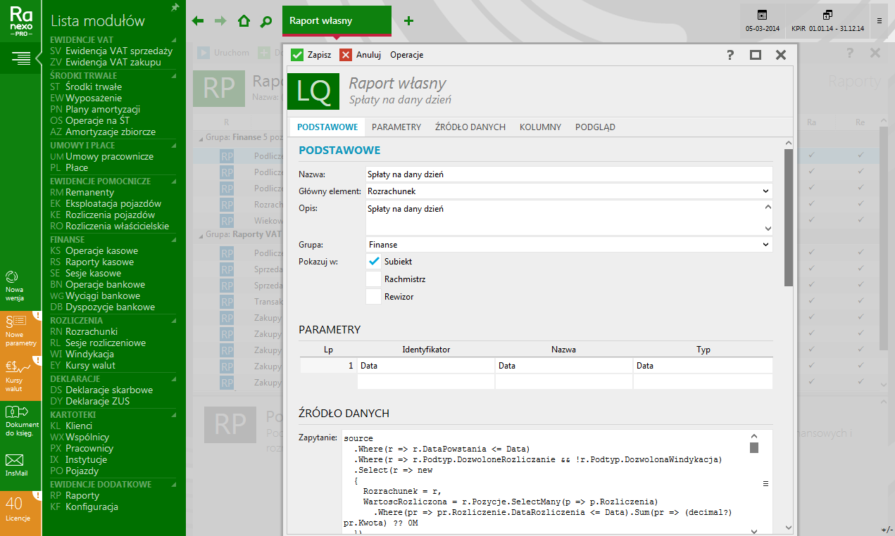 - definiowanie własnych raportów i wydruków z możliwością ich eksportu do innych programów InsERT nexo;