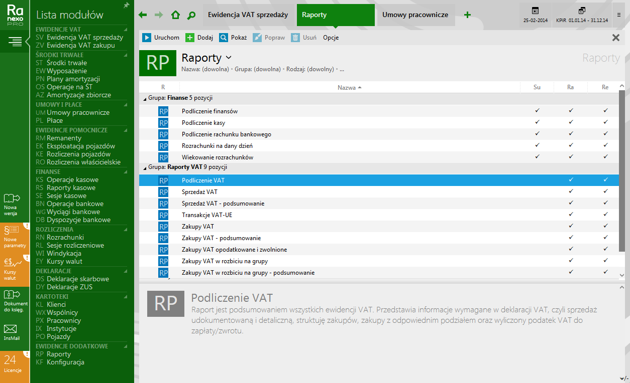 Rachmistrz nexo PRO jest programem służącym do obsługi uproszczonej księgowości, dedykowany dla firm rozliczających się w formie księgi przychodów i rozchodów lub ryczałtu od przychodów ewidencjonowanych. Świetnie się spisuje zarówno wśród przedsiębiorców samodzielnie dokumentujących swoją działalność, jak i w biurach rachunkowych.