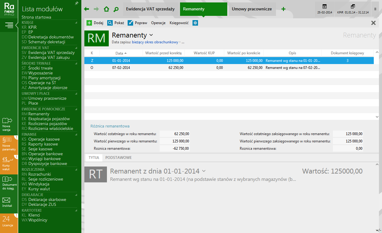 - ewidencja i rozliczanie rozrachunków, naliczanie różnic kursowych, integracja z zapisami księgowymi KPiR bądź EP oraz z zapisami VAT;
