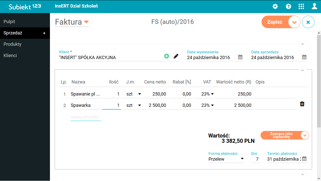 Subiekt jest najczęściej wybieraną marka programu sprzedażowego w Polsce. Subiekt 123 należy do tej samej rodziny. Ta aplikacja online została stworzona dla potrzeb firm szukających prostego i intuicyjnego narzędzia do obsługi sprzedaży, bez nadmiernie nadudowanego zarządzania magazynem.