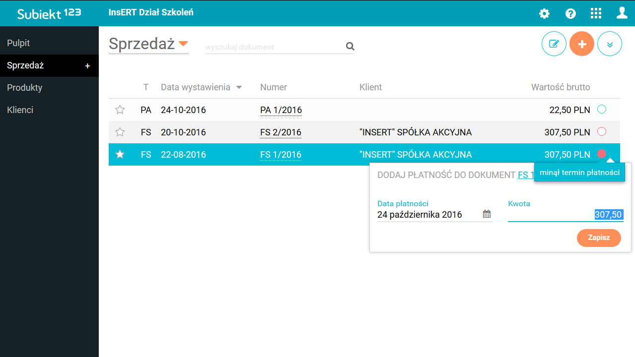 z programem aplikacja wyświetla informację o nadchodzącej płatności; - szybki dostęp do najczęściej wykonywanych czynności lub najczęściej obsługiwanych klientów poprzez indywidualne ustawienie pulpitu.